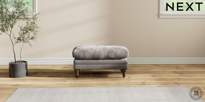 6.12.1 Buy Hutton Deep Relaxed Sit Footstool Distressed Velour French Grey High Turned - Mid from the Next UK online shop Click here to use our accessible website