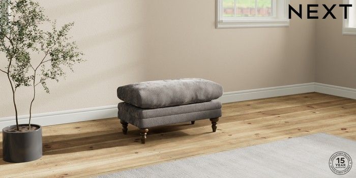 7.0.3 Buy Hutton Deep Relaxed Sit Footstool Distressed Velour French Grey High Turned - Mid from the Next UK online shop Click here to use our accessible website