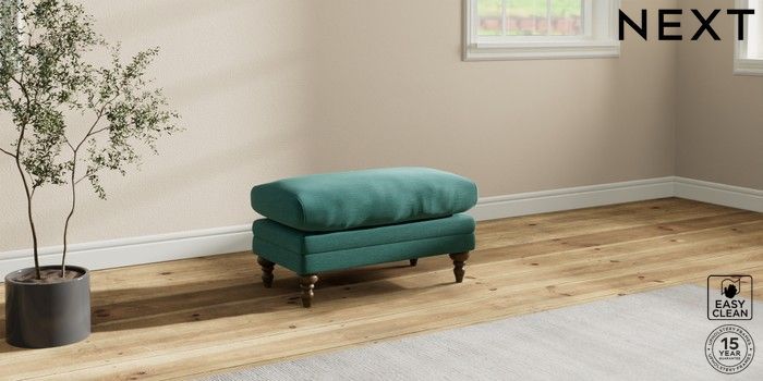 7.0.3 Buy Hutton Deep Relaxed Sit Footstool Fine Chenille Easy Clean Dark Juniper Green High Turned - Mid from the Next UK online shop Click here to use our accessible website