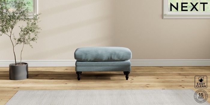 6.12.1 Buy Hutton Deep Relaxed Sit Footstool Fine Chenille Easy Clean Mid Blue High Turned - Dark from the Next UK online shop Click here to use our accessible website