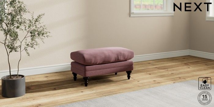 7.0.3 Buy Hutton Deep Relaxed Sit Footstool Fine Chenille Easy Clean Mid Mulberry Purple High Turned - Dark from the Next UK online shop Click here to use our accessible website