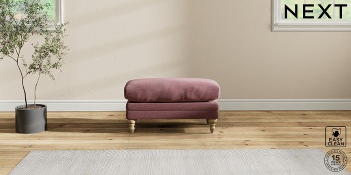 6.12.1 Buy Hutton Deep Relaxed Sit Footstool Fine Chenille Easy Clean Mid Mulberry Purple High Turned - Light from the Next UK online shop Click here to use our accessible website