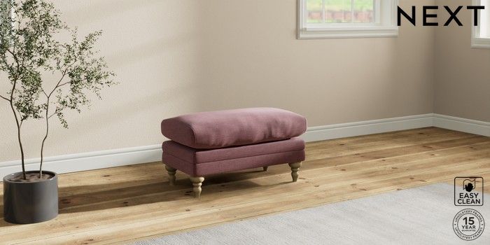 7.0.3 Buy Hutton Deep Relaxed Sit Footstool Fine Chenille Easy Clean Mid Mulberry Purple High Turned - Light from the Next UK online shop Click here to use our accessible website