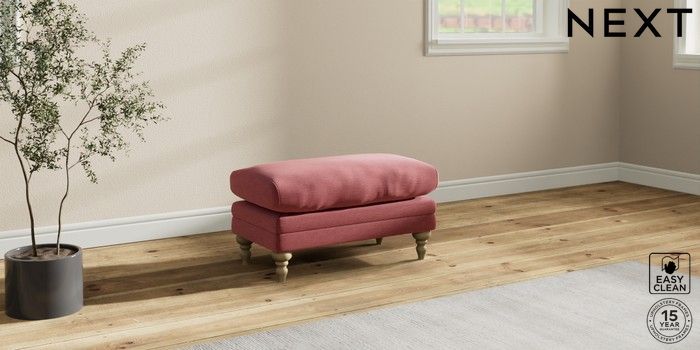 7.0.3 Buy Hutton Deep Relaxed Sit Footstool Fine Chenille Easy Clean Mid Pink High Turned - Light from the Next UK online shop Click here to use our accessible website