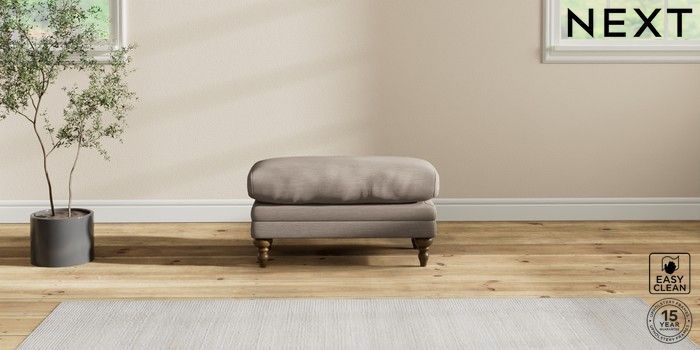 6.12.1 Buy Hutton Deep Relaxed Sit Footstool Fine Chenille Easy Clean Mid Taupe Brown High Turned - Mid from the Next UK online shop Click here to use our accessible website