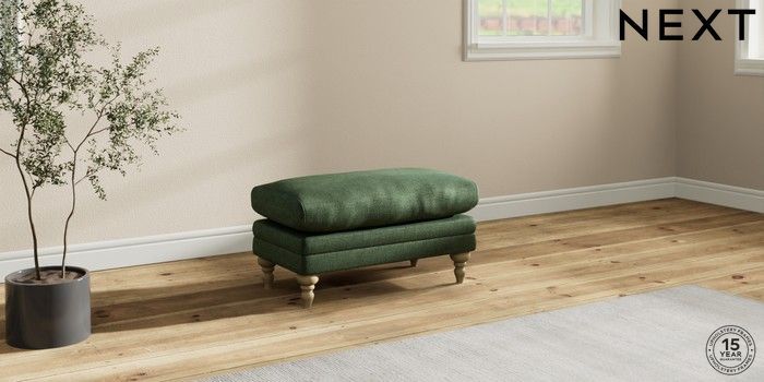 7.0.3 Buy Hutton Deep Relaxed Sit Footstool Luxe Chenille Dark Green High Turned - Light from the Next UK online shop Click here to use our accessible website