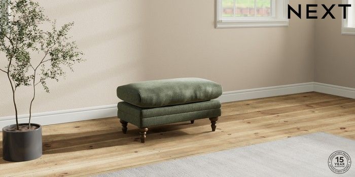 7.0.3 Buy Hutton Deep Relaxed Sit Footstool Luxe Chenille Mid Green High Turned - Mid from the Next UK online shop Click here to use our accessible website