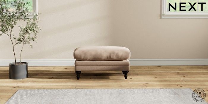 6.12.1 Buy Hutton Deep Relaxed Sit Footstool Luxe Chenille Mid Natural High Turned - Dark from the Next UK online shop Click here to use our accessible website