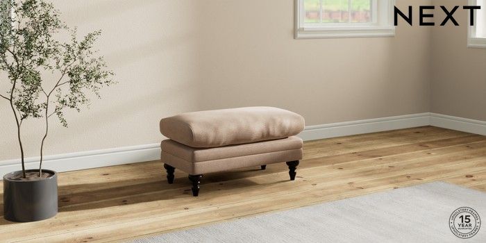 7.0.3 Buy Hutton Deep Relaxed Sit Footstool Luxe Chenille Mid Natural High Turned - Dark from the Next UK online shop Click here to use our accessible website