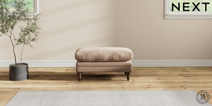 6.12.1 Buy Hutton Deep Relaxed Sit Footstool Luxe Chenille Mid Natural High Turned - Mid from the Next UK online shop Click here to use our accessible website