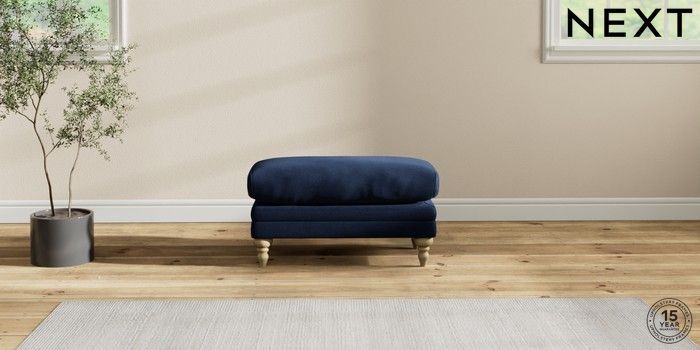 6.12.1 Buy Hutton Deep Relaxed Sit Footstool Luxe Chenille Navy Blue High Turned - Light from the Next UK online shop Click here to use our accessible website