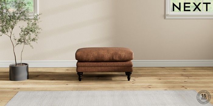 6.12.1 Buy Hutton Deep Relaxed Sit Footstool Monza Faux Leather Easy Clean Chestnut Brown High Turned - Dark from the Next UK online shop Click here to use our accessible website