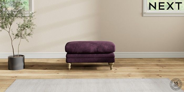 6.12.1 Buy Hutton Deep Relaxed Sit Footstool Plush Chenille Dark Plum Purple High Turned - Light from the Next UK online shop Click here to use our accessible website