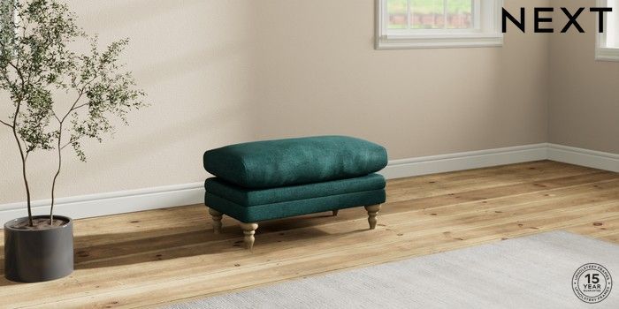 7.0.3 Buy Hutton Deep Relaxed Sit Footstool Plush Chenille Dark Teal Green High Turned - Light from the Next UK online shop Click here to use our accessible website