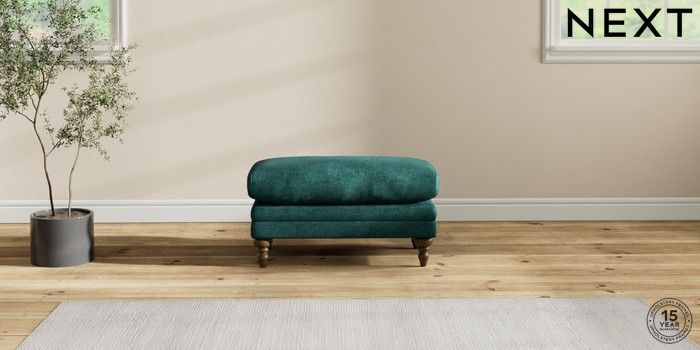 6.12.1 Buy Hutton Deep Relaxed Sit Footstool Plush Chenille Dark Teal Green High Turned - Mid from the Next UK online shop Click here to use our accessible website