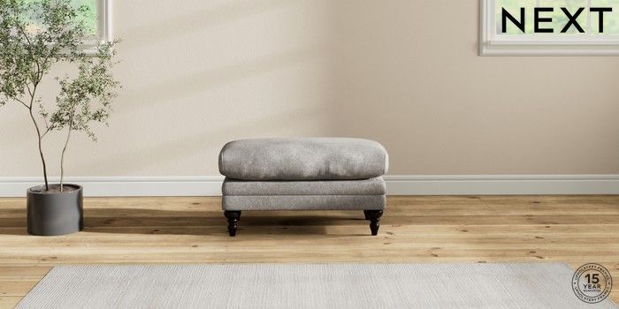 6.12.1 Buy Hutton Deep Relaxed Sit Footstool Plush Chenille Light Grey High Turned - Dark from the Next UK online shop Click here to use our accessible website