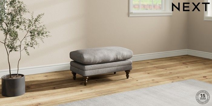 7.0.3 Buy Hutton Deep Relaxed Sit Footstool Plush Chenille Light Grey High Turned - Mid from the Next UK online shop Click here to use our accessible website