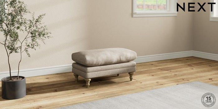 7.0.3 Buy Hutton Deep Relaxed Sit Footstool Plush Chenille Light Natural High Turned - Light from the Next UK online shop Click here to use our accessible website