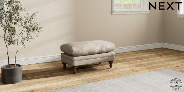 7.0.3 Buy Hutton Deep Relaxed Sit Footstool Plush Chenille Light Natural High Turned - Mid from the Next UK online shop Click here to use our accessible website