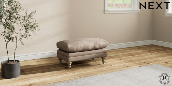 7.0.3 Buy Hutton Deep Relaxed Sit Footstool Plush Chenille Mid Natural High Turned - Light from the Next UK online shop Click here to use our accessible website