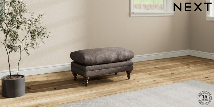 7.0.3 Buy Hutton Deep Relaxed Sit Footstool Plush Chenille Mink Brown High Turned - Mid from the Next UK online shop Click here to use our accessible website