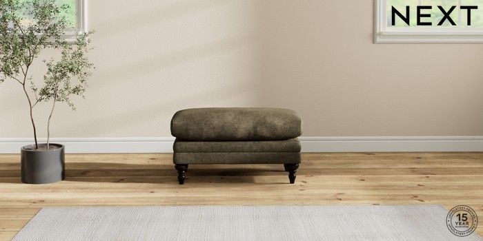 6.12.1 Buy Hutton Deep Relaxed Sit Footstool Plush Chenille Moss Green High Turned - Dark from the Next UK online shop Click here to use our accessible website