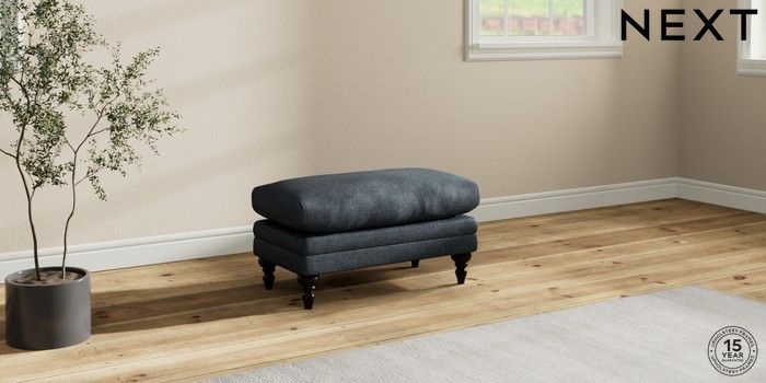 7.0.3 Buy Hutton Deep Relaxed Sit Footstool Plush Chenille Slate Blue High Turned - Dark from the Next UK online shop Click here to use our accessible website