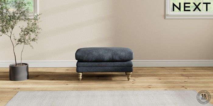 6.12.1 Buy Hutton Deep Relaxed Sit Footstool Plush Chenille Slate Blue High Turned - Light from the Next UK online shop Click here to use our accessible website