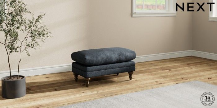 7.0.3 Buy Hutton Deep Relaxed Sit Footstool Plush Chenille Slate Blue High Turned - Mid from the Next UK online shop Click here to use our accessible website