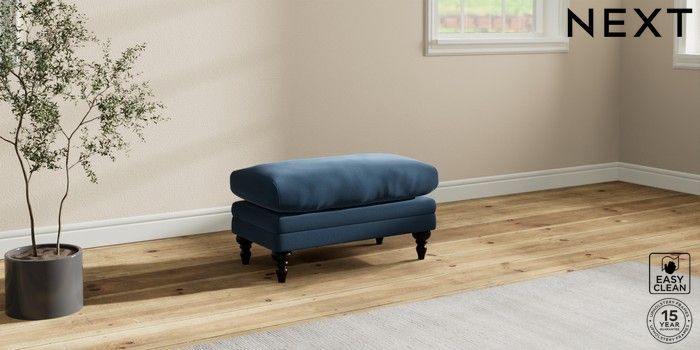 7.0.3 Buy Hutton Deep Relaxed Sit Footstool Plush Velvet Easy Clean Airforce Blue High Turned - Dark from the Next UK online shop Click here to use our accessible website