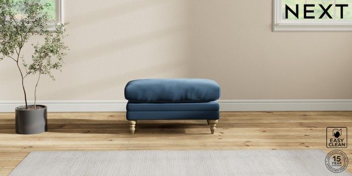 6.12.1 Buy Hutton Deep Relaxed Sit Footstool Plush Velvet Easy Clean Airforce Blue High Turned - Light from the Next UK online shop Click here to use our accessible website