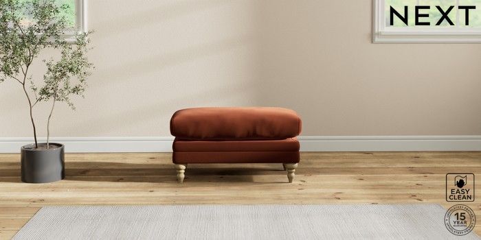 6.12.1 Buy Hutton Deep Relaxed Sit Footstool Plush Velvet Easy Clean Ginger Orange High Turned - Light from the Next UK online shop Click here to use our accessible website