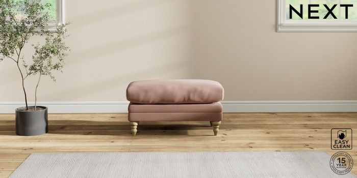 6.12.1 Buy Hutton Deep Relaxed Sit Footstool Plush Velvet Easy Clean Mid Natural High Turned - Light from the Next UK online shop Click here to use our accessible website