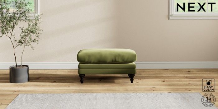 6.12.1 Buy Hutton Deep Relaxed Sit Footstool Plush Velvet Easy Clean Mid Olive Green High Turned - Dark from the Next UK online shop Click here to use our accessible website