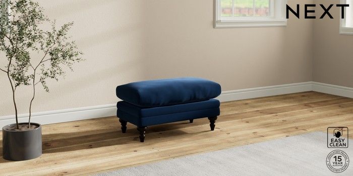 7.0.3 Buy Hutton Deep Relaxed Sit Footstool Plush Velvet Easy Clean Navy Blue High Turned - Dark from the Next UK online shop Click here to use our accessible website