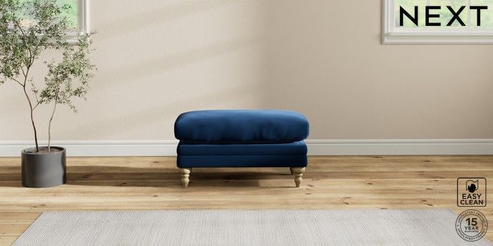 6.12.1 Buy Hutton Deep Relaxed Sit Footstool Plush Velvet Easy Clean Navy Blue High Turned - Light from the Next UK online shop Click here to use our accessible website