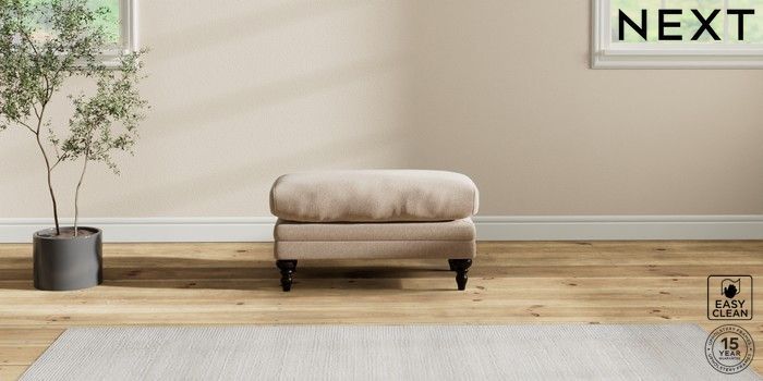 6.12.1 Buy Hutton Deep Relaxed Sit Footstool Tweedy Blend Easy Clean Light Dove Natural High Turned - Dark from the Next UK online shop Click here to use our accessible website