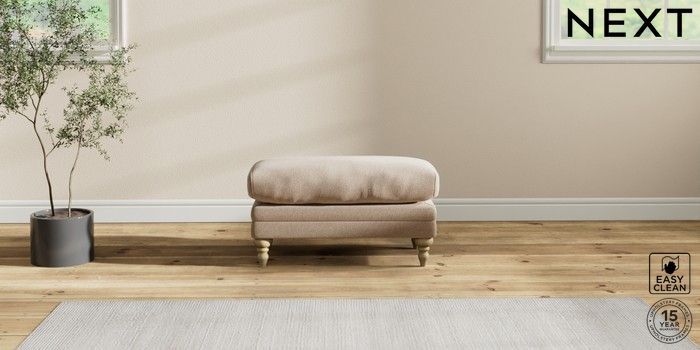 6.12.1 Buy Hutton Deep Relaxed Sit Footstool Tweedy Blend Easy Clean Light Dove Natural High Turned - Light from the Next UK online shop Click here to use our accessible website