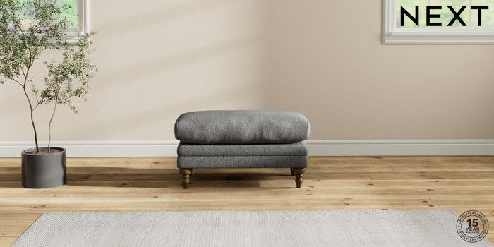 6.12.1 Buy Hutton Deep Relaxed Sit Footstool Tweedy Chenille Dark Grey High Turned - Mid from the Next UK online shop Click here to use our accessible website