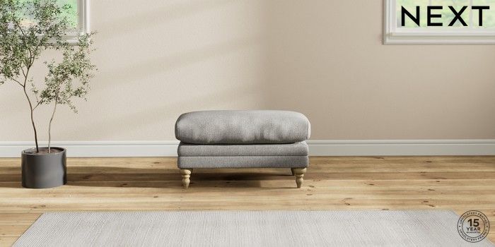 6.12.1 Buy Hutton Deep Relaxed Sit Footstool Tweedy Chenille Mid Grey High Turned - Light from the Next UK online shop Click here to use our accessible website