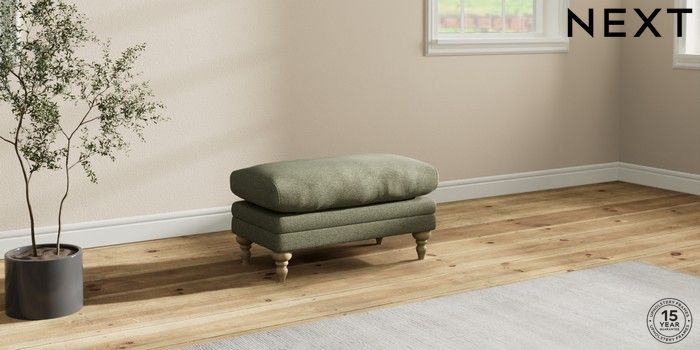 7.0.3 Buy Hutton Deep Relaxed Sit Footstool Tweedy Chenille Mid Moss Green High Turned - Light from the Next UK online shop Click here to use our accessible website