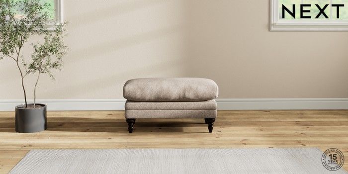 6.12.1 Buy Hutton Deep Relaxed Sit Footstool Tweedy Chenille Mid Natural High Turned - Dark from the Next UK online shop Click here to use our accessible website