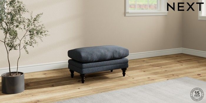 7.0.3 Buy Hutton Deep Relaxed Sit Footstool Tweedy Chenille Navy Blue High Turned - Dark from the Next UK online shop Click here to use our accessible website