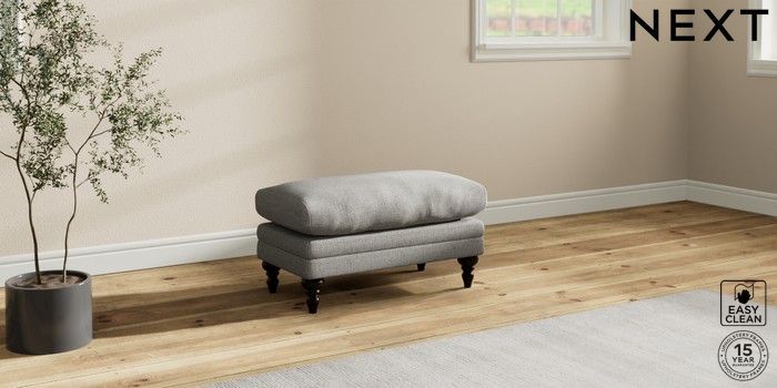 7.0.3 Buy Hutton Deep Relaxed Sit Footstool Woven Chenille Easy Clean Light Grey High Turned - Dark from the Next UK online shop Click here to use our accessible website