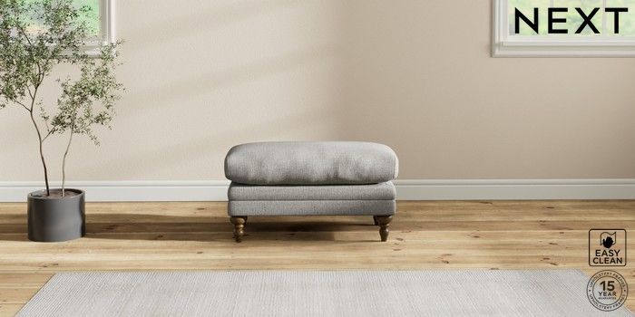 6.12.1 Buy Hutton Deep Relaxed Sit Footstool Woven Chenille Easy Clean Light Grey High Turned - Mid from the Next UK online shop Click here to use our accessible website