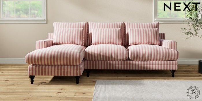 7.0.3 Buy Hutton Deep Relaxed Sit Medium Sofa Chaise - Left Hand Bold Chenille Stripe Dark Pink Country Turned - Dark from the Next UK online shop Click here to use our accessible website