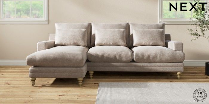 7.0.3 Buy Hutton Deep Relaxed Sit Medium Sofa Chaise - Left Hand Boucle Chenille Light Natural Country Turned - Light from the Next UK online shop Click here to use our accessible website