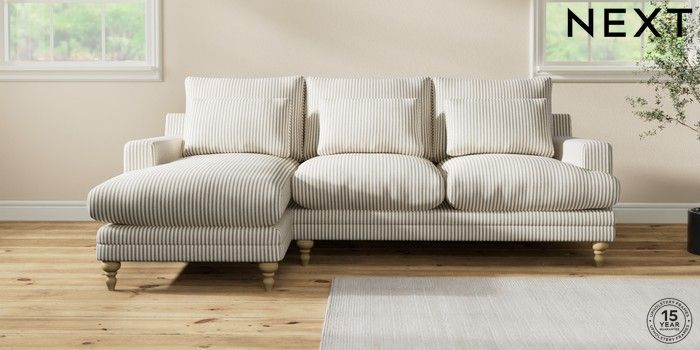 7.0.3 Buy Hutton Deep Relaxed Sit Medium Sofa Chaise - Left Hand Chenille Stripe Moss Green Country Turned - Light from the Next UK online shop Click here to use our accessible website