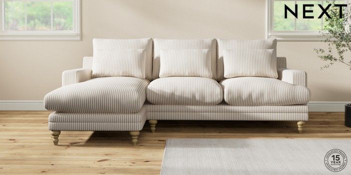 7.0.3 Buy Hutton Deep Relaxed Sit Medium Sofa Chaise - Left Hand Chenille Stripe Natural Country Turned - Light from the Next UK online shop Click here to use our accessible website