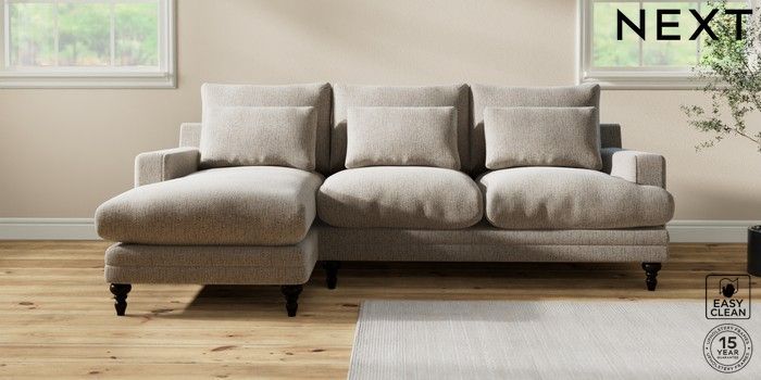 7.0.3 Buy Hutton Deep Relaxed Sit Medium Sofa Chaise - Left Hand Chunky Boucle Easy Clean Dove Country Turned - Dark from the Next UK online shop Click here to use our accessible website